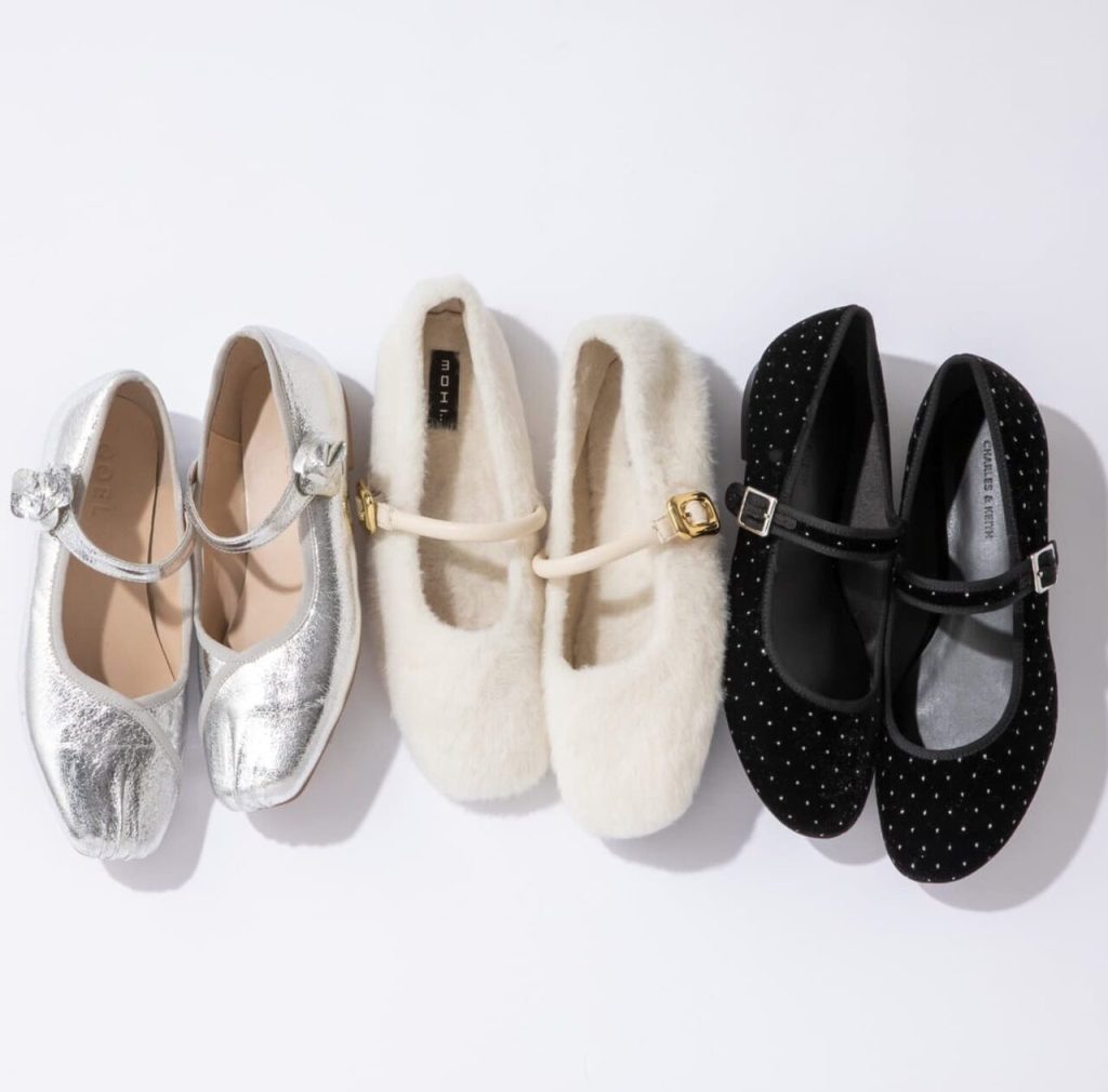 甲のストラップが足元を華奢みえさせてくれるメリージェーンは、大人可愛いフォルムで40代の中でも人気上昇中!素足はもちろんシアーな靴下やキラキラなものに合わせても可愛く、足元で遊びゴコロもプラスできます。色や形、素材もさまざまなものが出ているのでその日の気分やコーデに合わせて自分好みのスタイルを。