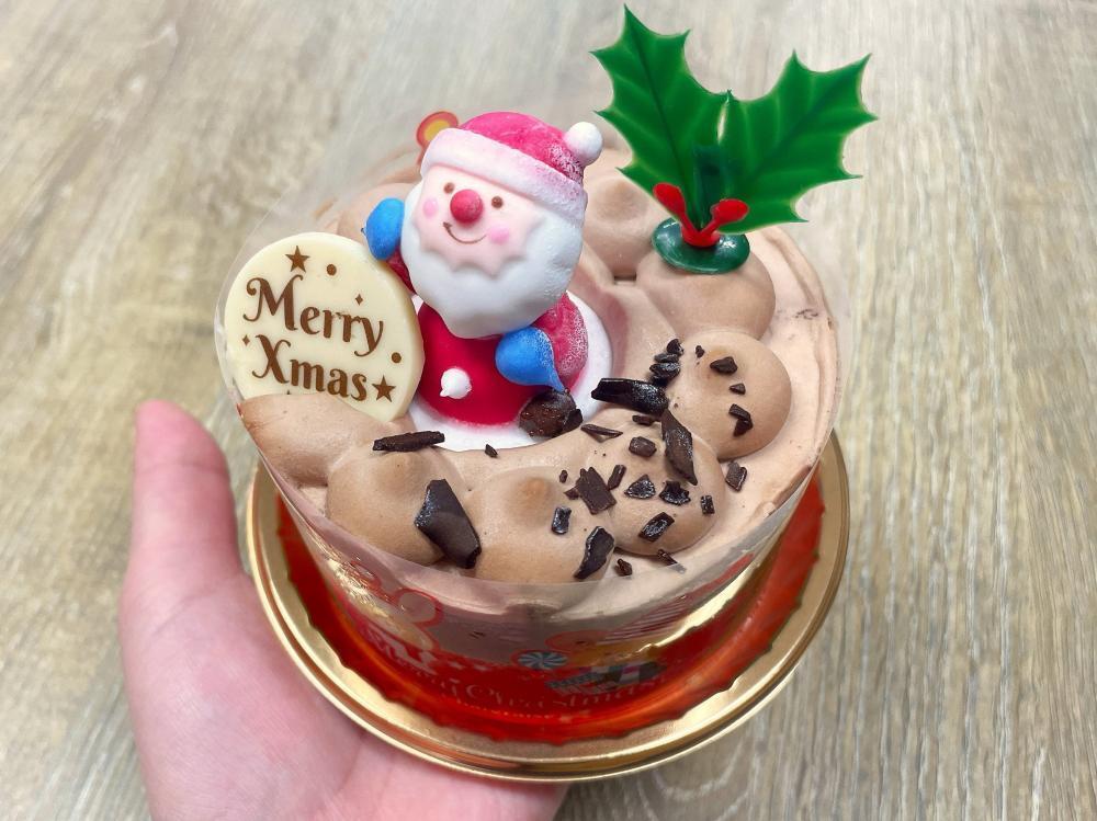 こちらが、いま話題のケーキ「Xmasハッピーサンタクロース」。2種類の味がある中、今回はチョコをチョイスしてみました。