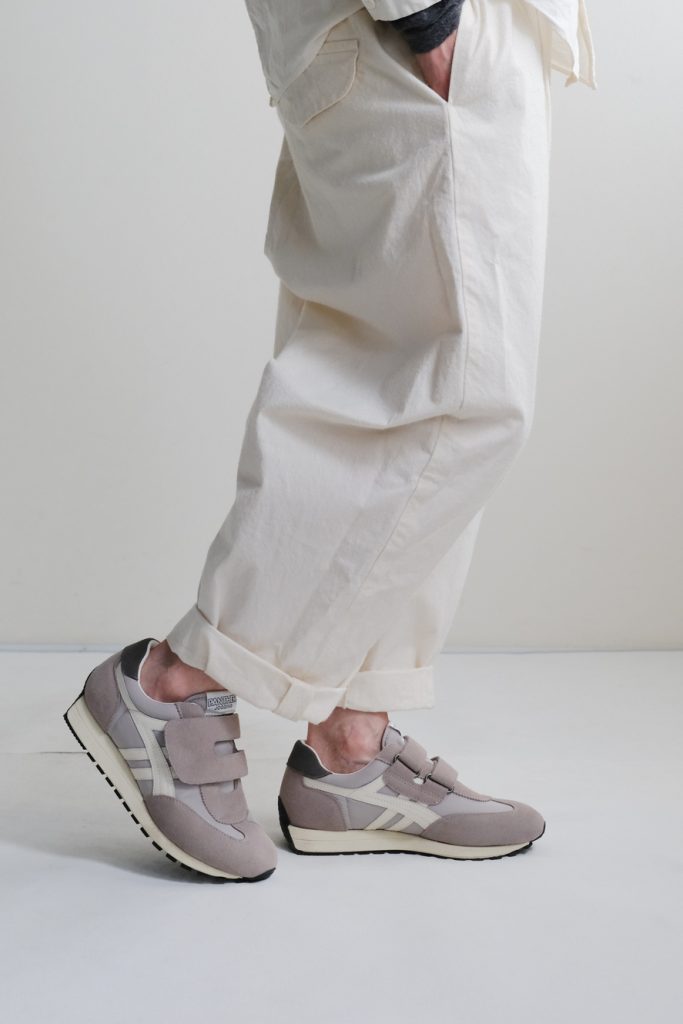 今回の別注モデルの最大の魅力は、履き口部分。足を入れるスペースが広く着脱もラクチンなので、ストレスフリーに履くことができます。またシューレースではなく"ベルクロ"と呼ばれるマジックテープを採用。甲高の方でも微調整ができ、納得のいくフィット感を手に入れられます。