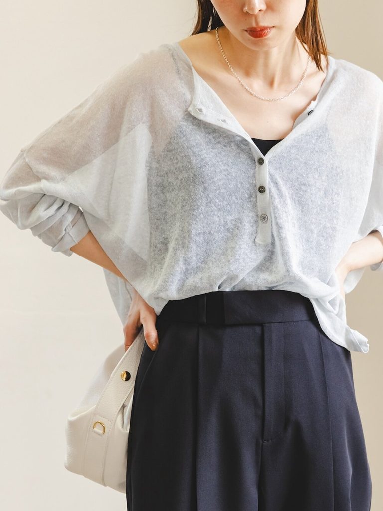 ⑦涼感もこなれも両得!シアーニットで夏映えコーデ