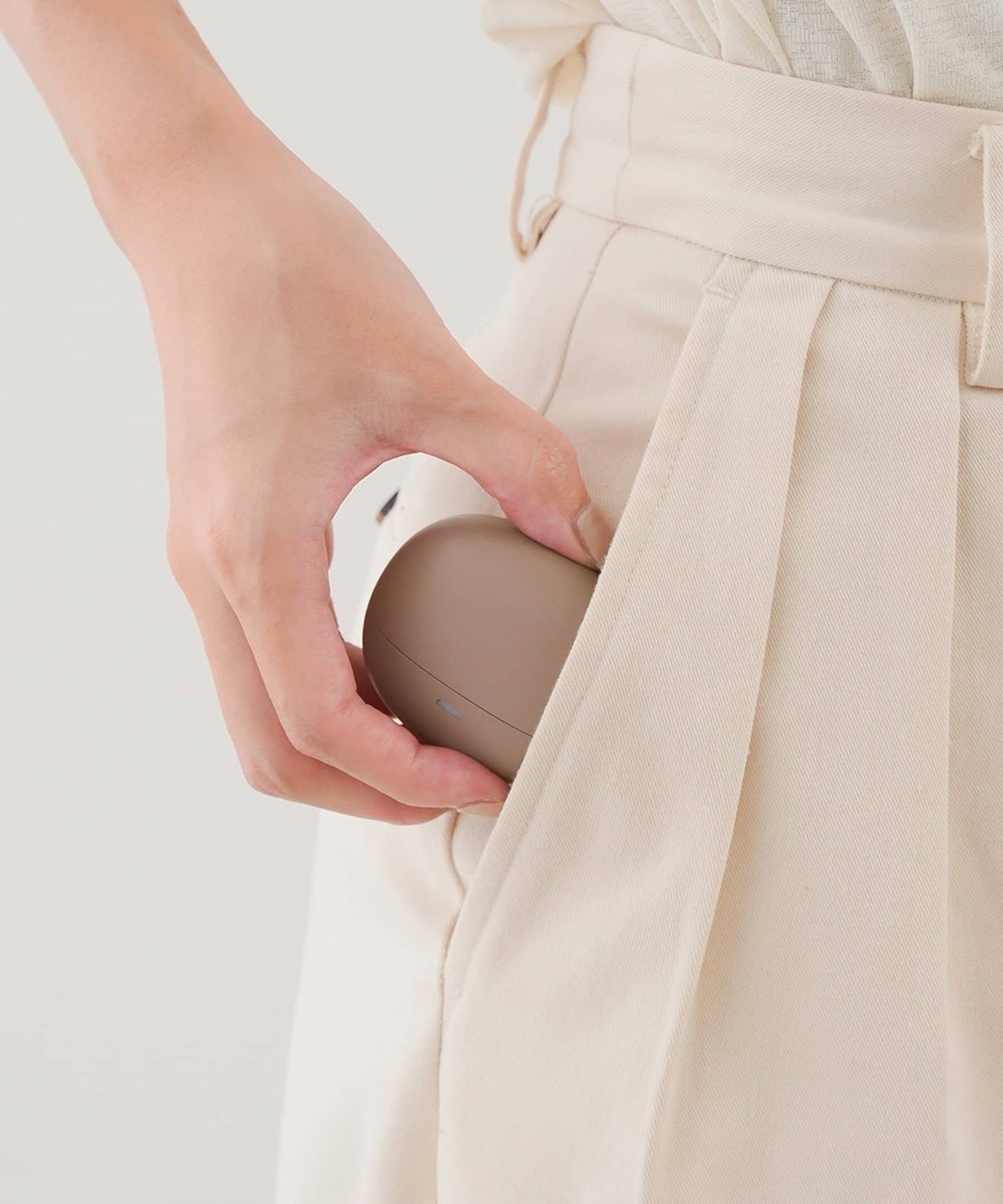 コンパクトな手のひらサイズでポケットにもすっぽりと入ります。防水性能はIPX4相当で、汗や手を洗ったときの水しぶきなら対応◎。デザインもアクセサリー風の全4色展開で、おしゃれにスタイリングできるのが嬉しいです。