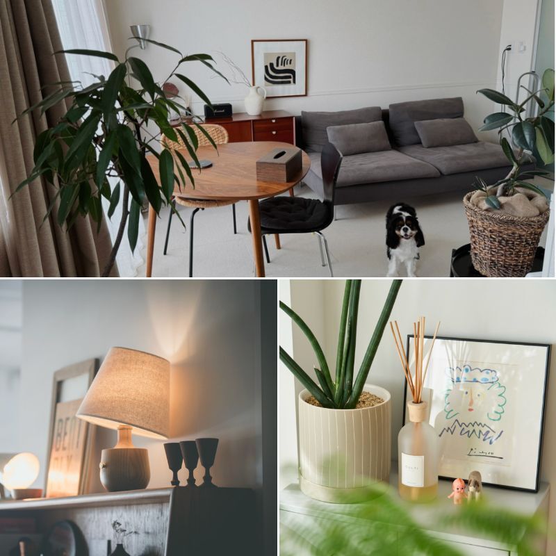 愛犬ちゃんと暮らす日常を、SNSで発信していらっしゃいます。お部屋のなかは温かみのある北欧風インテリアで統一されていて、とっても素敵。