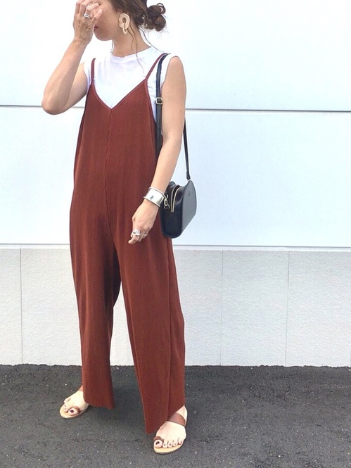 写真では分かりづらいですが、実はパンツ部分がプリーツになっています。歩くたびにプリーツがふんわり揺れて、ムードのある着こなしに。とても1,000円とは思えないデザイン性の高い一着です。