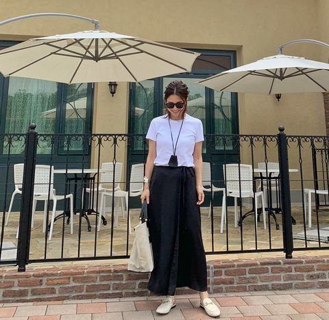 白T×マキシスカートのベーシックコーデを、モノトーンでまとめてスタイリッシュに。シンプルにまとめたコーディネートには、高見え小物をあわせてワンランク上に仕上げるのが正解です。