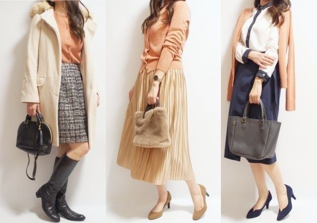 座敷で長時間にわたり座ることが多い飲み会では、膝を崩しやすいAラインに広がるフレアスカートが使えます。また、会場によっては靴はブーツではなく、すぐ脱げるパンプスが賢い選択。