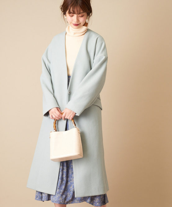 ハンサムに見られがちなブルーカラーのコートですが、実はスカートスタイルとも相性のいいアイテム。パンツならスタイリッシュに、スカートなら甘めの着こなしを楽しめます。