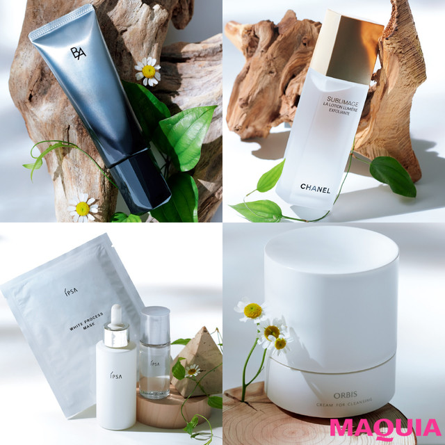 薬用美白美容液、薬用美白マスク、角質ケアローションのキットで、春の日差しに負けない透明美肌を手に入れて。美白キット【ホワイトプロセス エッセンス OP [医薬部外品] 50ml(現品)、ホワイトプロセス マスク [医薬部外品]3枚、クリアアップローション 30ml(トライアルサイズ)】¥12000/イプサ(3/13限定発売)