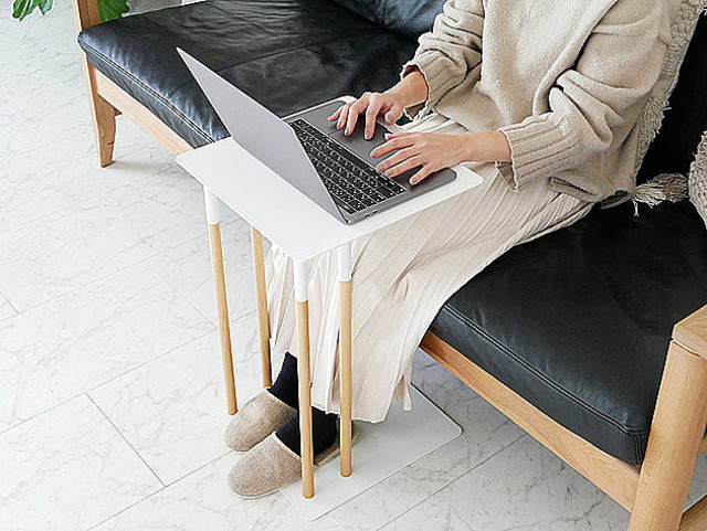 この差し込みサイドテーブルなら、ソファーに深く座って本当にリラックスした体制で作業が出来て驚くほど快適に!