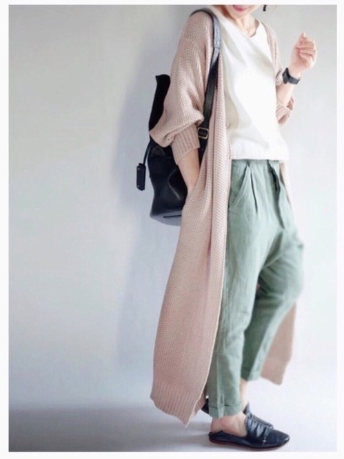 冬コーデを、簡単に春コーデにアップデートさせるためには、春を感じさせる明るめの「色」を、取り入れて。コーデ全体をパッと明るくしてくれますよ。お手持ちのカーキやベージュのパンツを取り入れるだけで、簡単に春の明るいイメージに変える事ができます。