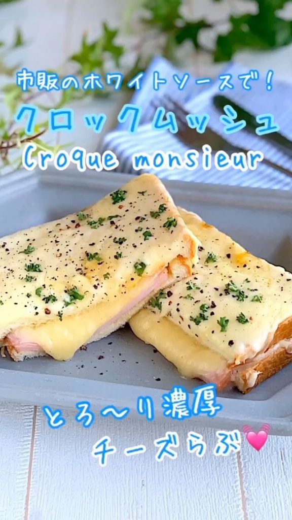 市販のホワイトソースで作る、お手軽クロックムッシュ。一口食べたら、濃厚なチーズとまろやかなホワイトソースの旨味が広がります。ちょっとリッチな気分になれる、贅沢感のあるホットサンドです。