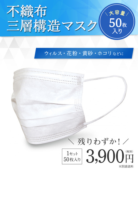 安心ルートのマスク情報!「不織布三層構造マスク」が50枚入り3,900円