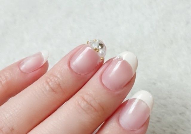 片手でもセルフで簡単にできる!王道フレンチにプラスして♡こっそり輝くオフィスネイル