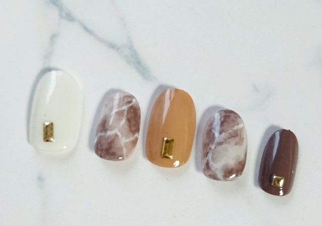 オフィスもOK!ホワイト×ブラウンが上品な大人っぽ大理石ネイル