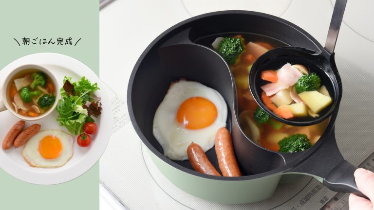 おかずとスープを同時に調理♡ありそうでなかった深型仕切りパン「ダブルクック」がもうすぐ発売!