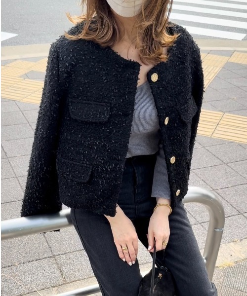リエディの“ボアリボン金釦ノーカラーツイードジャケット”が盛れる!大人コーデ7選