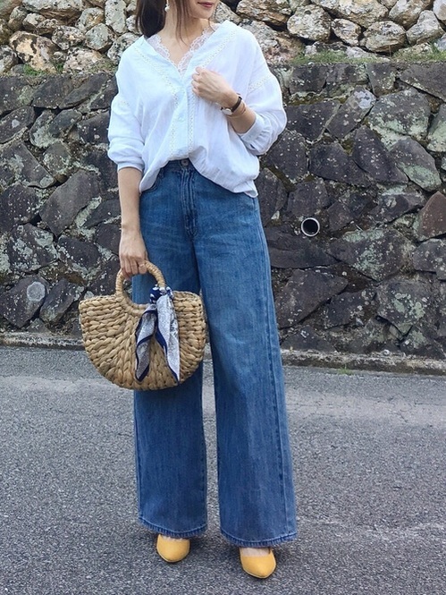 大人女子の爽やか春コーデ!「白ブラウス・シャツ×デニムパンツ」特集