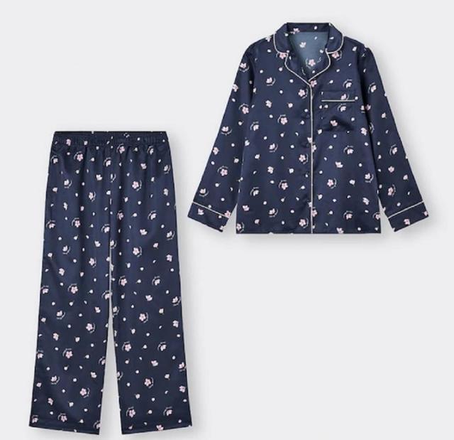 GUに今年も「桜サテンパジャマ」出てるよ~♡英字も入ってさらにおしゃれ。