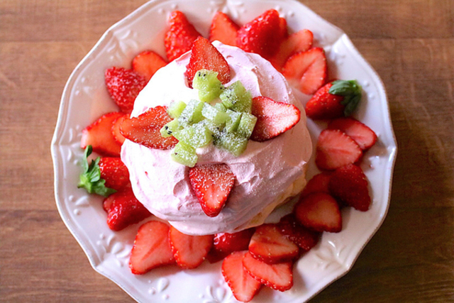 山盛りホイップにイチゴソースの滝。 タリーズのパンケーキがペロリいける美味しさだった