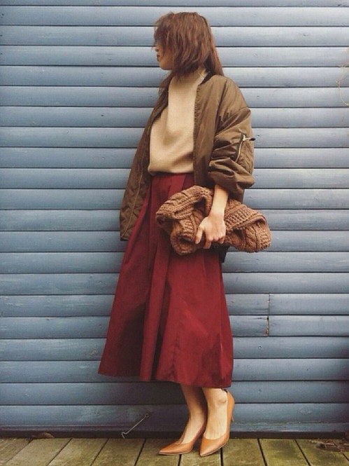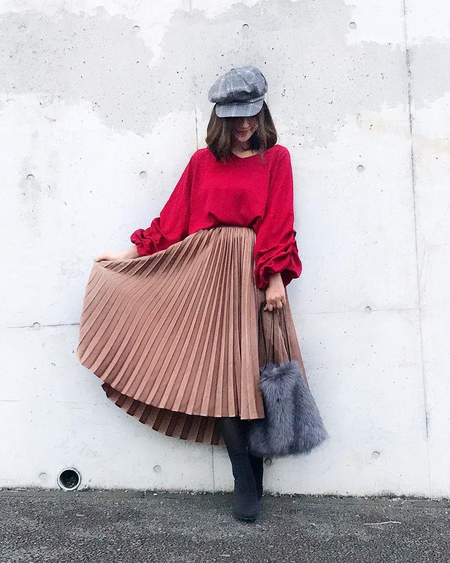 可愛いねって褒められる♡「赤フレアスカート」の秋冬着まわし術