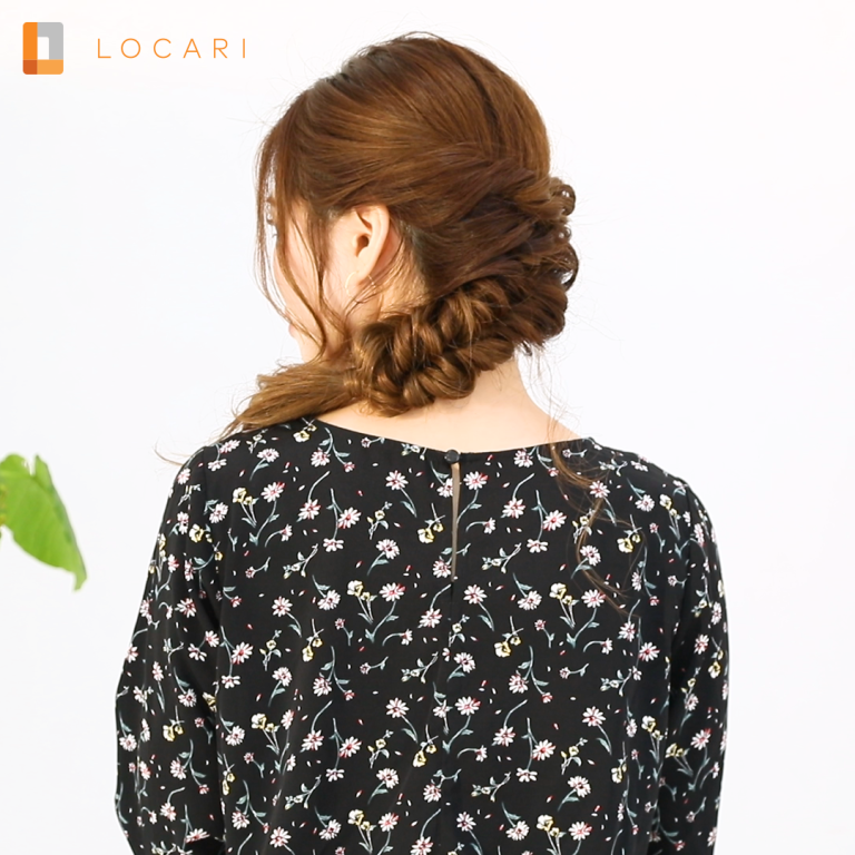 三つ編みとくるりんぱだけで華やかに 編みおろしアレンジ
