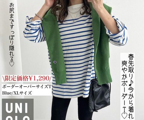 バズリ中!最愛春待ち服はユニクロ「ボーダーオーバーサイズT」に決まり♡