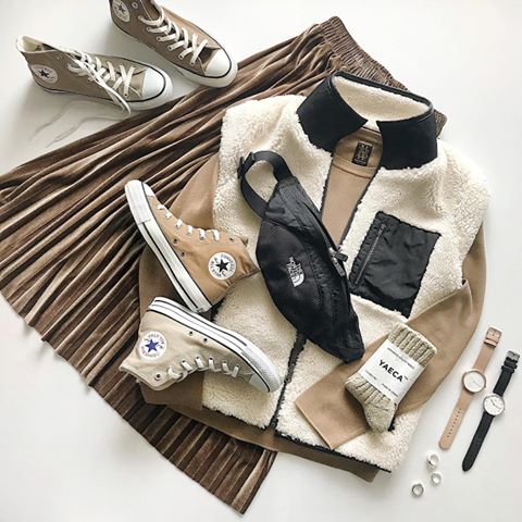 テイストMIXコーデが旬♪マウンテンパーカー×スカートで大人可愛いコーデに♡