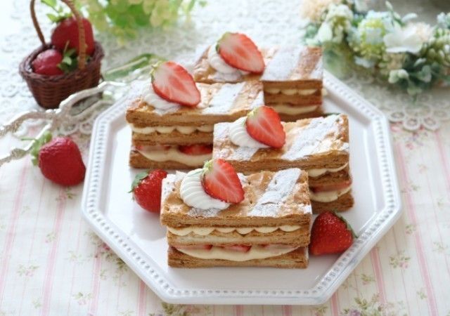 冷凍パイシート&レンジでつくるクリームで簡単♪サクサク苺のミルフィーユ