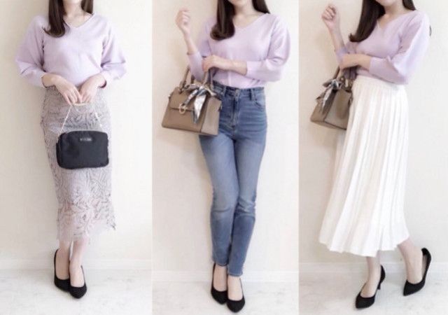 プチプラなのに大人可愛い♡春の艶っぽラベンダーニット着回し6days♪