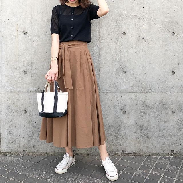 定番《黒ロングスカート》で春おしゃれを楽しもう♪シルエット別お手本コーデ集