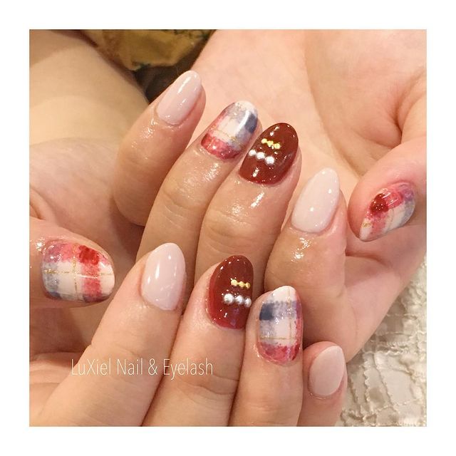 お上品な可愛さ♡冬のオフィスネイルはアーガイル柄できまり