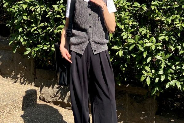 昼間の暑さにちょうどいい!Tシャツ×ニットベストの秋映えレイヤード術