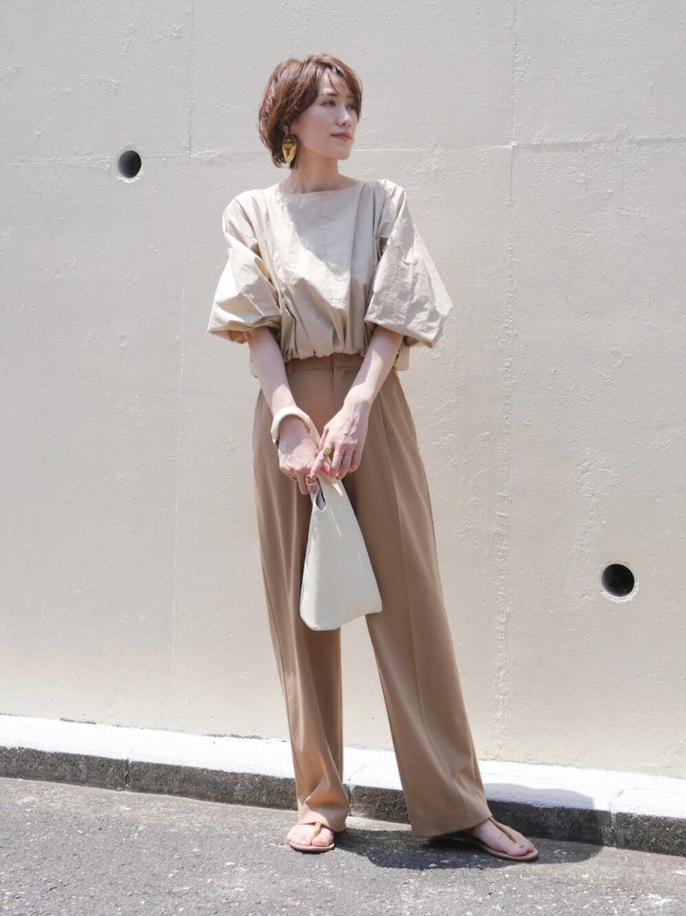 残暑から秋へ切り替えるなら。“涼しげベージュワントーンコーデ”が正解!