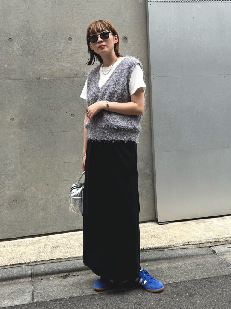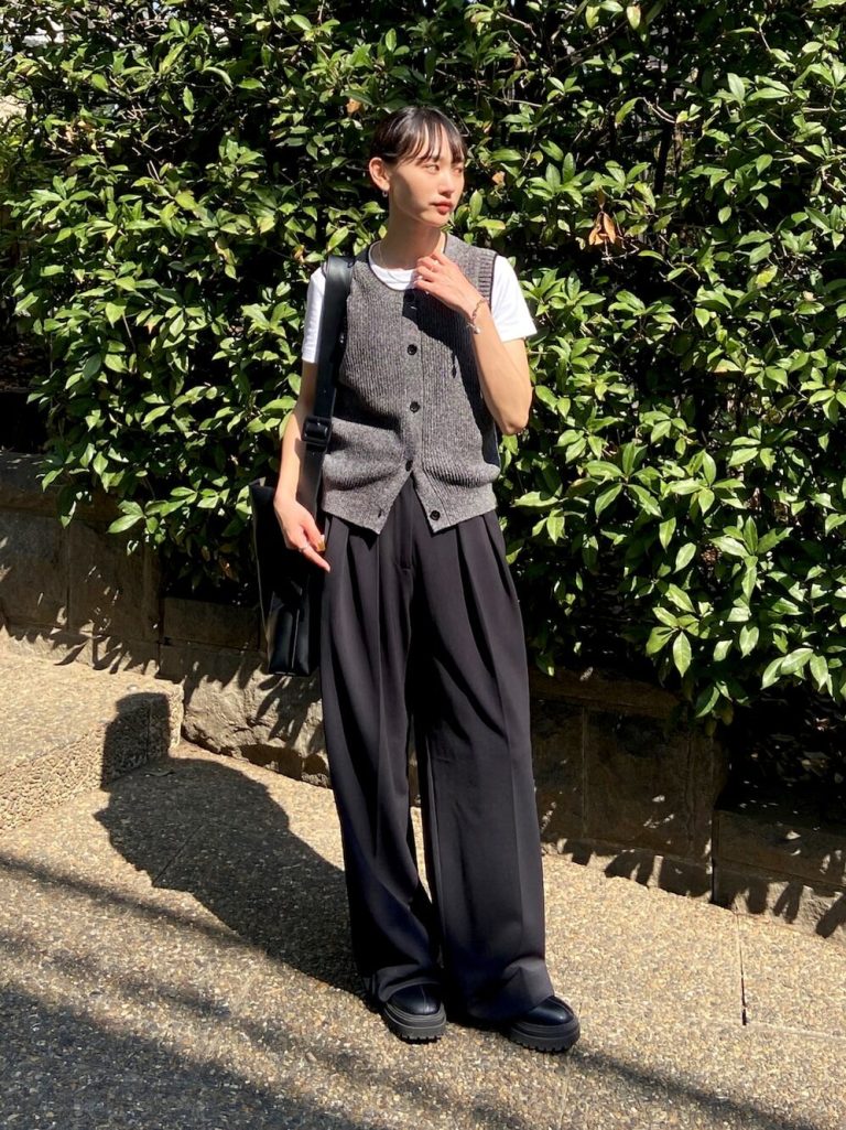 昼間の暑さにちょうどいい!Tシャツ×ニットベストの秋映えレイヤード術
