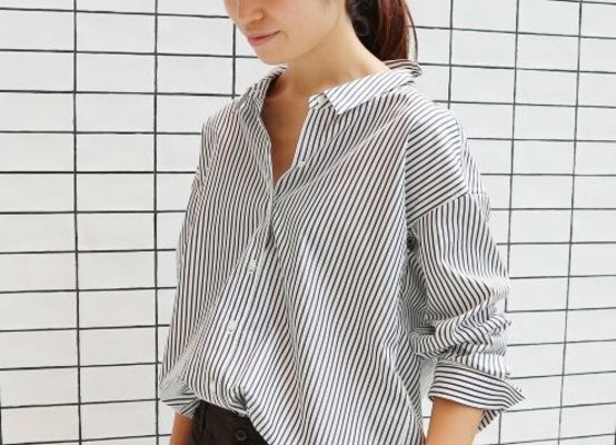 春のマストアイテム!「抜き襟シャツ」に似合う簡単まとめ髪テク