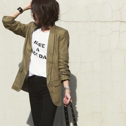 何にでも合うからこそ。黒スキニーには冒険心あるアイテムをプラス