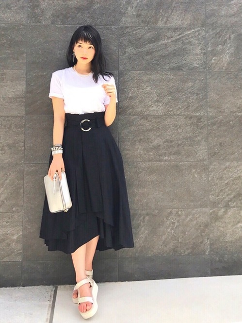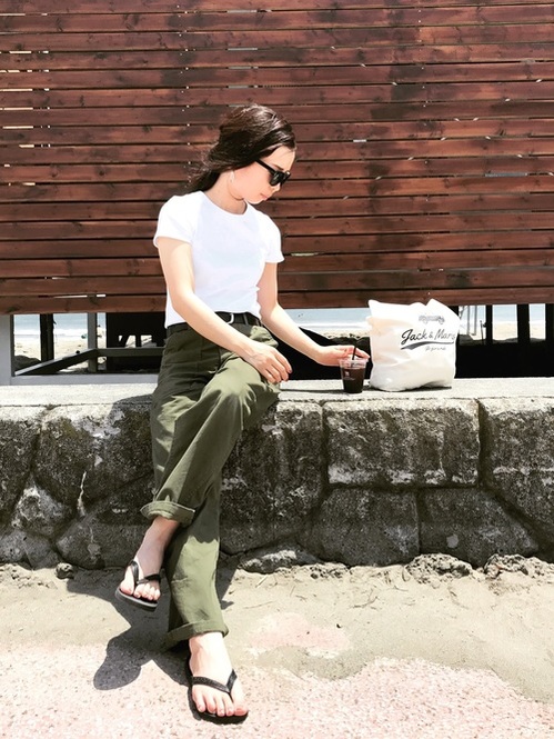 大人の夏スタイルはこれ。ハイウエスト&白Tシャツが爽やかです♡