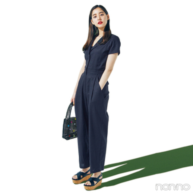 新木優子は黒のオールインワンでちょっぴりモードな夏コーデ[毎日コーデ]