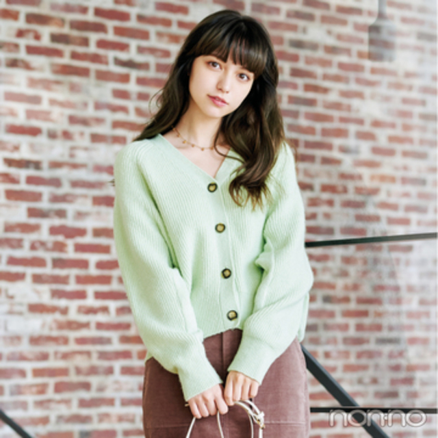 グリーンのゆるニットを10倍おしゃれに着るアイディア