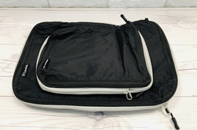 ファスナーで簡単に圧縮できる衣類ケースが便利