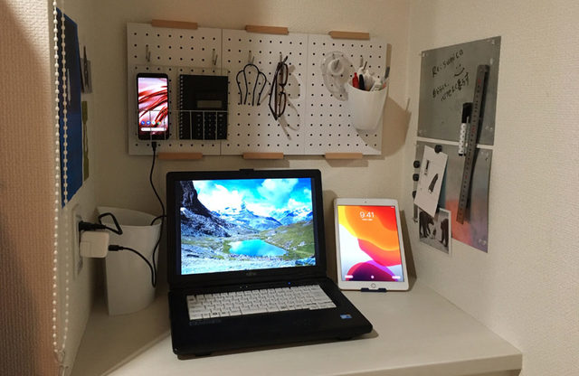 在宅ワークが快適。「100均有孔ボードDIY」で狭いスペースを広く使う!