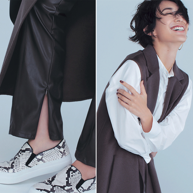 注目の「スリットパンツ」でスニーカーコーデを女っぽく更新