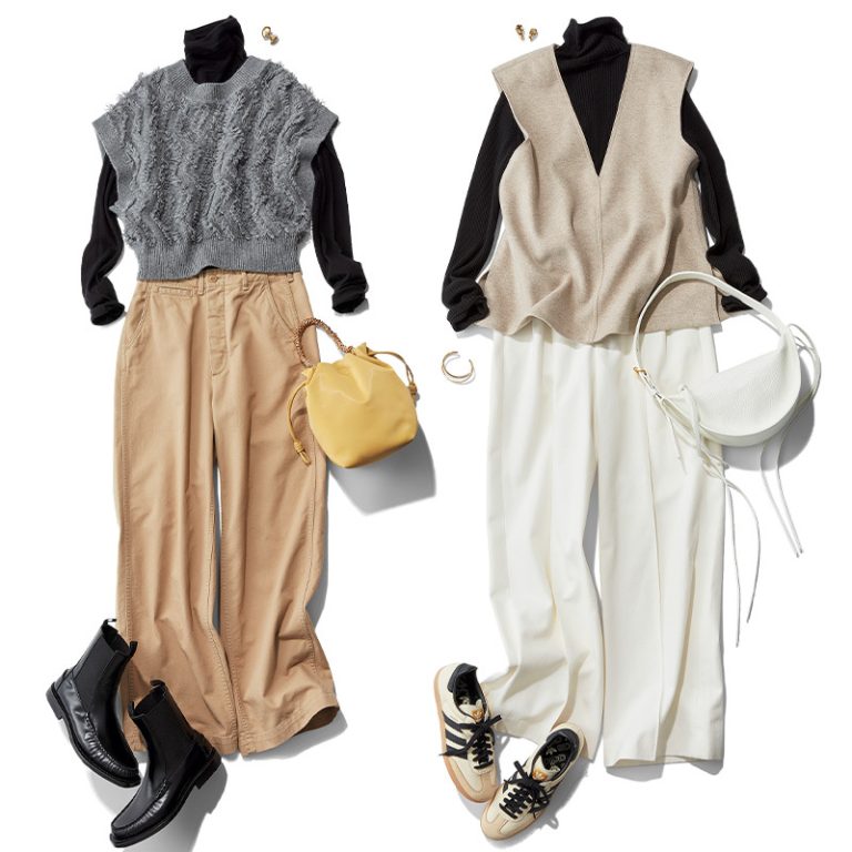 “週5黒タートル”もイケる!『×ベスト』のオシャレ見えコーデ3選