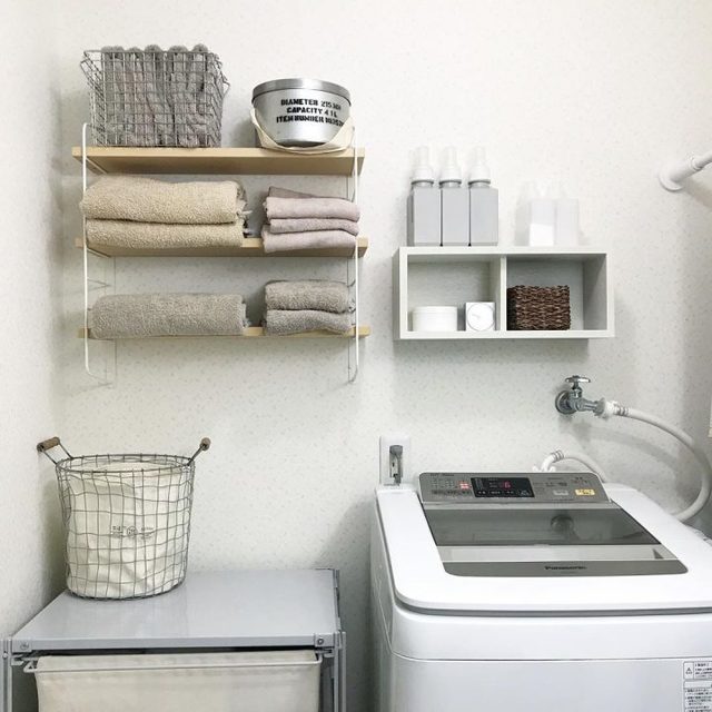 洗濯機周りの収納が少ないのが悩み。《棚》をつけて収納不足を解決!