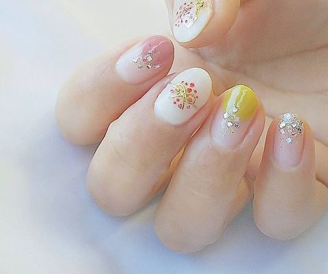適当に塗るだけで大丈夫!初心者でもできる春の塗りかけネイルデザイン