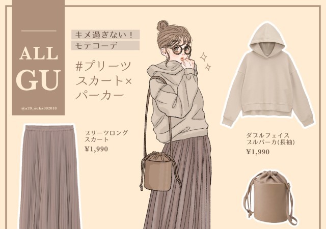 こちらは、前後2wayで着られるニットプルオーバーとプリーツスカートのセットアップ。