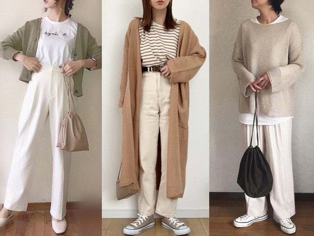 ベージュのサマーニットを合わせて、ワイドニムをキレイめに着こなしています。バッグに付けたスカーフがアクセントになりコーデが華やかな印象に。アクセサリーは控えめにしているのも素敵です。