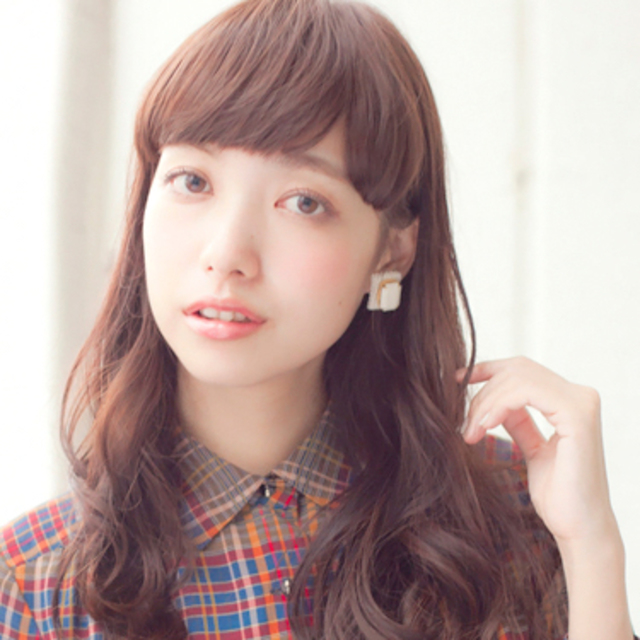 ヘアアレンジなどもしやすい髪型で、毛先のワンカールと重め前髪が可愛いポイントです。