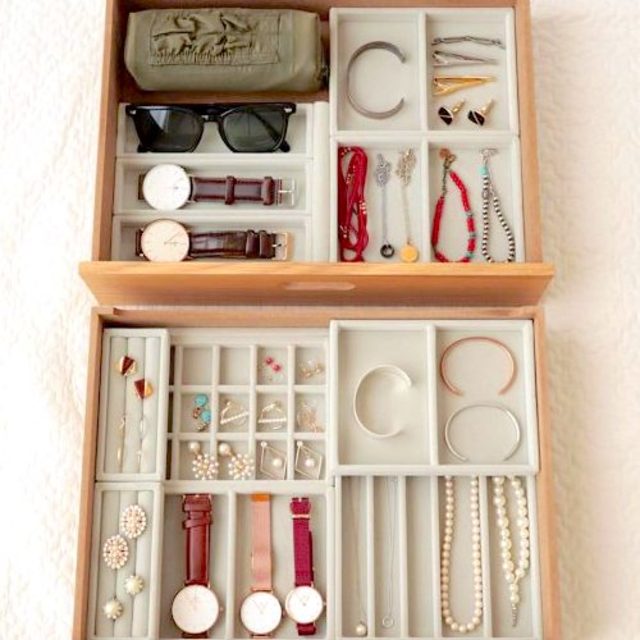 小分けにできる専用の引き出しを使って、使い勝手よく収納してみましょう。子供から大人まで使いやすく、個人で分けるのもおすすめですよ。