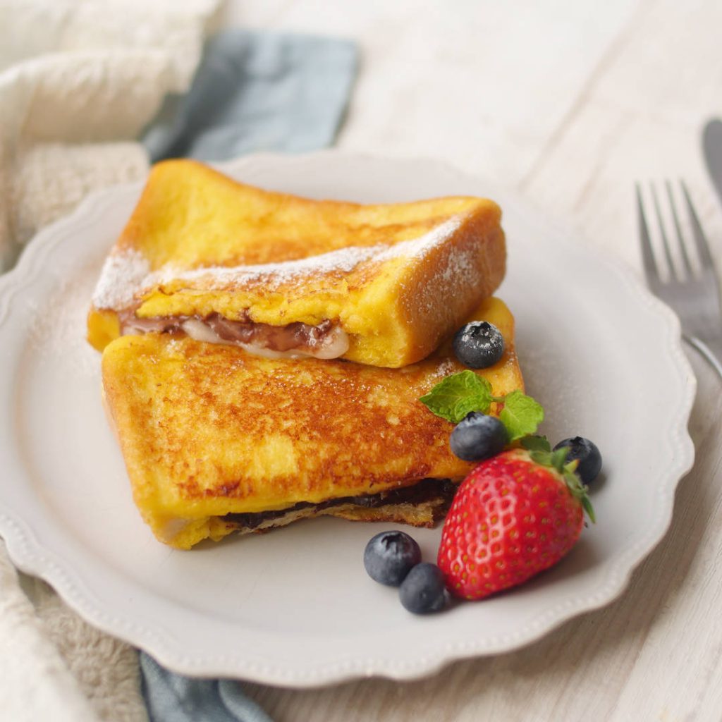 「チョコもちフレンチトースト」のレシピと作り方をご紹介。フレンチトーストの間にお餅とチョコレートをはさんで、フライパンでしっとりと蒸し焼きにしました。チョコレートの濃厚な甘さと香り、もちもち食感にハマる、新食感の贅沢フレンチトーストです♪