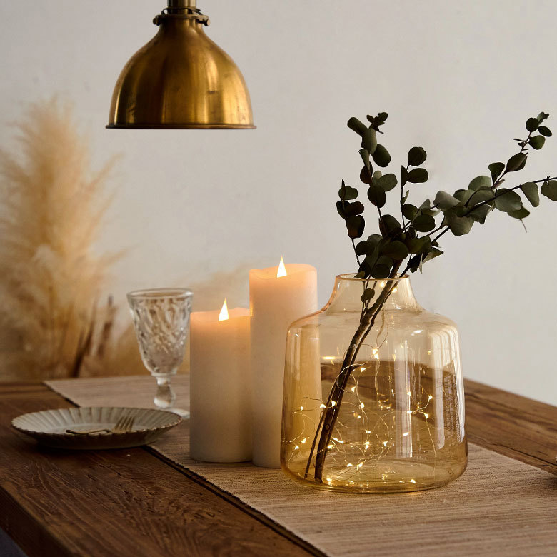 生花はもちろん、ドライフラワーとの相性もばっちり。ホリデーシーズンにはストリングライトを入れても楽しめそうです。